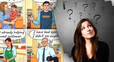تنها کاری که باید انجام دهید این است که به تصویر زیر نگاه کنید و مشخص کنید چه کسی در فروشگاه کیف پول شخصی را دزدیده است. سه نفر از افرادی که در تصویر دیده می شوند حقیقت را می گویند، اما یکی از آنها دروغ می گوید.